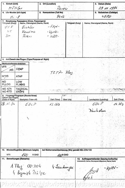 Re-registered with the German Bundeswehr as 94+12 and operated by the MFG Parow from April 1991 till November 30, 1994, as SOC.