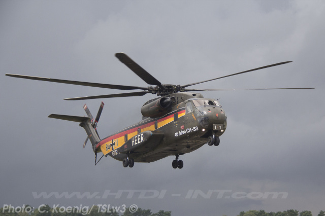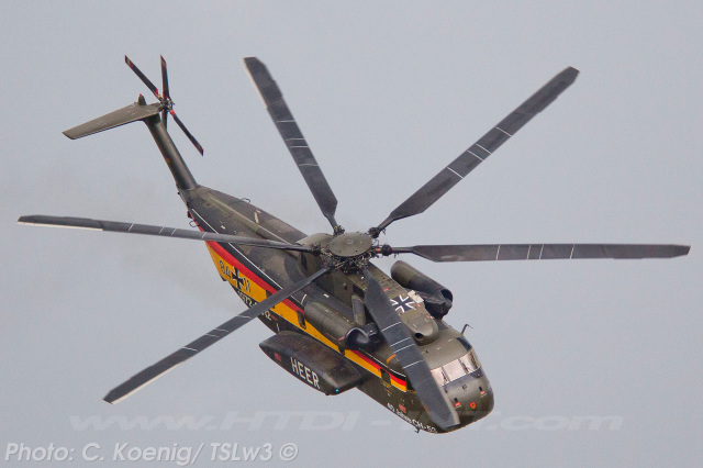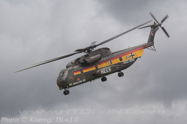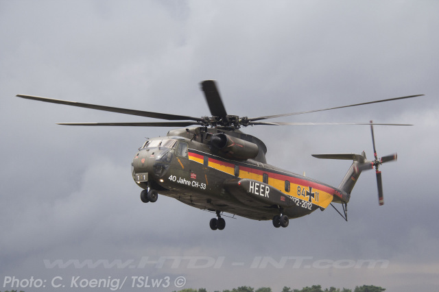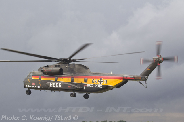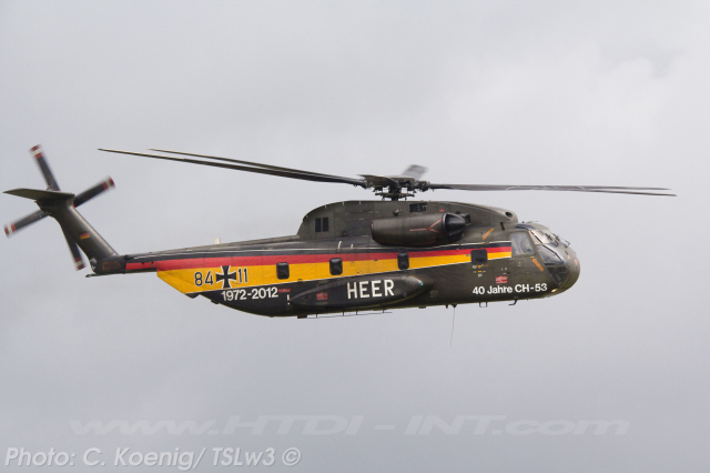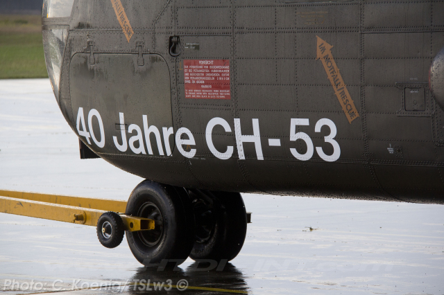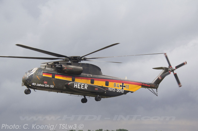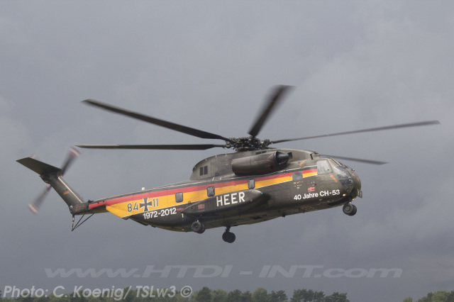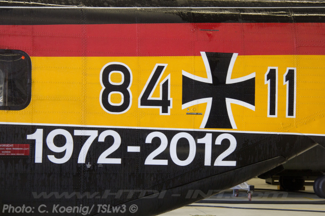 This helicopter had received a special paint scheme to commemorate the 40th anniversary of CH-53 service with the Bundeswehr (Heer), marking four decades from 1972 to 2012. The official anniversary celebration took place on Thursday, June 14, 2012, at Bueckeburg. Notably, it was also the final official event overseen by the German Army (Heer) General then in charge of all German CH-53 helicopters, before their transfer to the German Air Force (Luftwaffe).