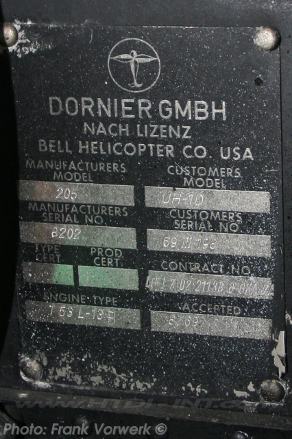 This helicopter, when registered to the West German Bundeswehr as Air Force 71+42 from August 4, 1969, was SOC and stored at Diepholz as noted in April 2001.