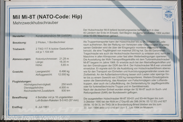 This helicopter when registered in East Germany to the Nationale Volksarmee as NVA-398 was operated by the HG-34 from July 1969 till March 1991.