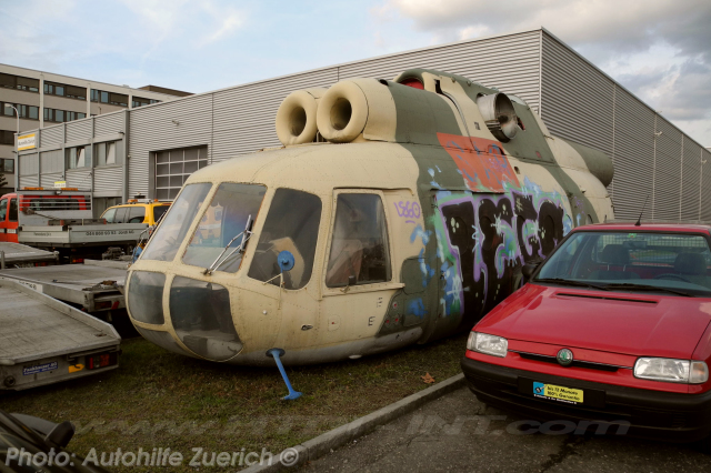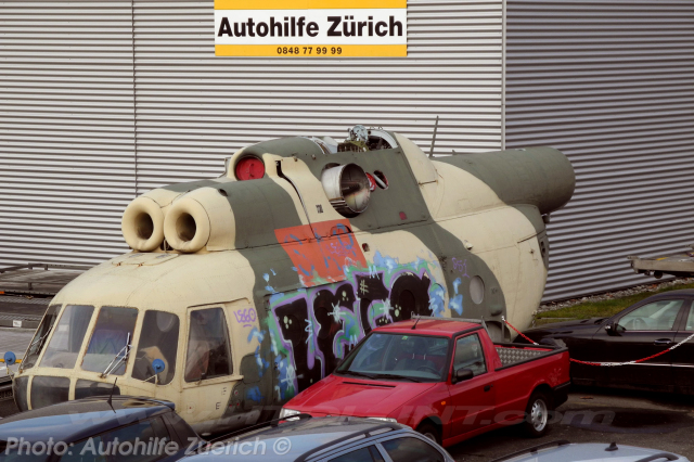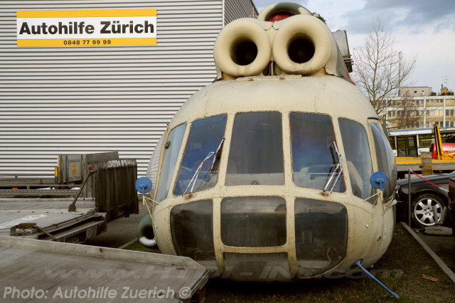 The main fuselage only without wheels was given as a gift to the Autohilfe Zuerich, G. Zuber at Wallisellen and noted there in the car park from June 2012 till March 2016.