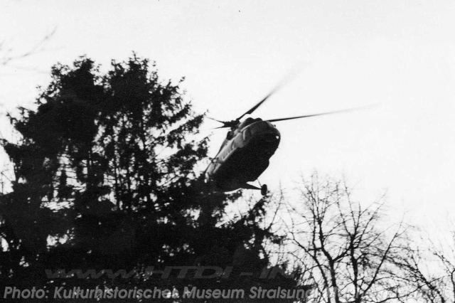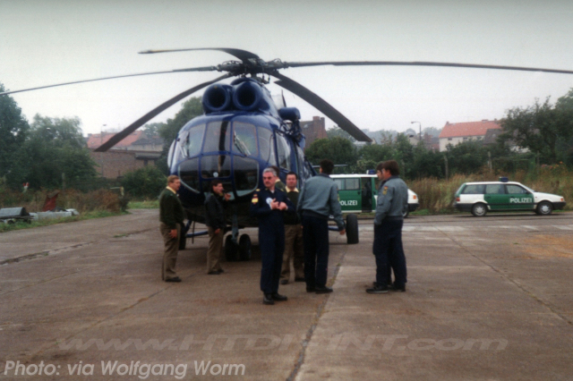 This helicopter was registered to East Germany as NVA-831 on March 25, 1977, and operated by the MHG-18 Kurt Barthel from June 21, 1977. It had to make a precautionary landing due to heavy vibrations at 12.07hrs on the December 2, 1982 at Doelitz near Gnoin (Kreis Teterow). Back in service till March 1991.