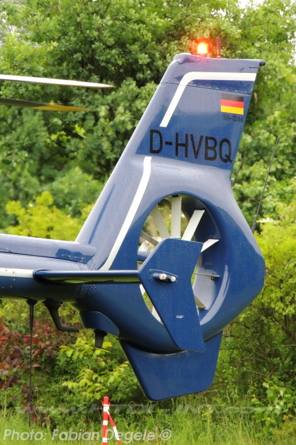 This helicopter is regd. in Germany by the Bundesminister des Innern as D-HVBQ with Mode-S Hex: 3E0A3E since 13.03.2003. CofA reduced to permit on 20.01.2009 after mod to the EC135T2+ version.